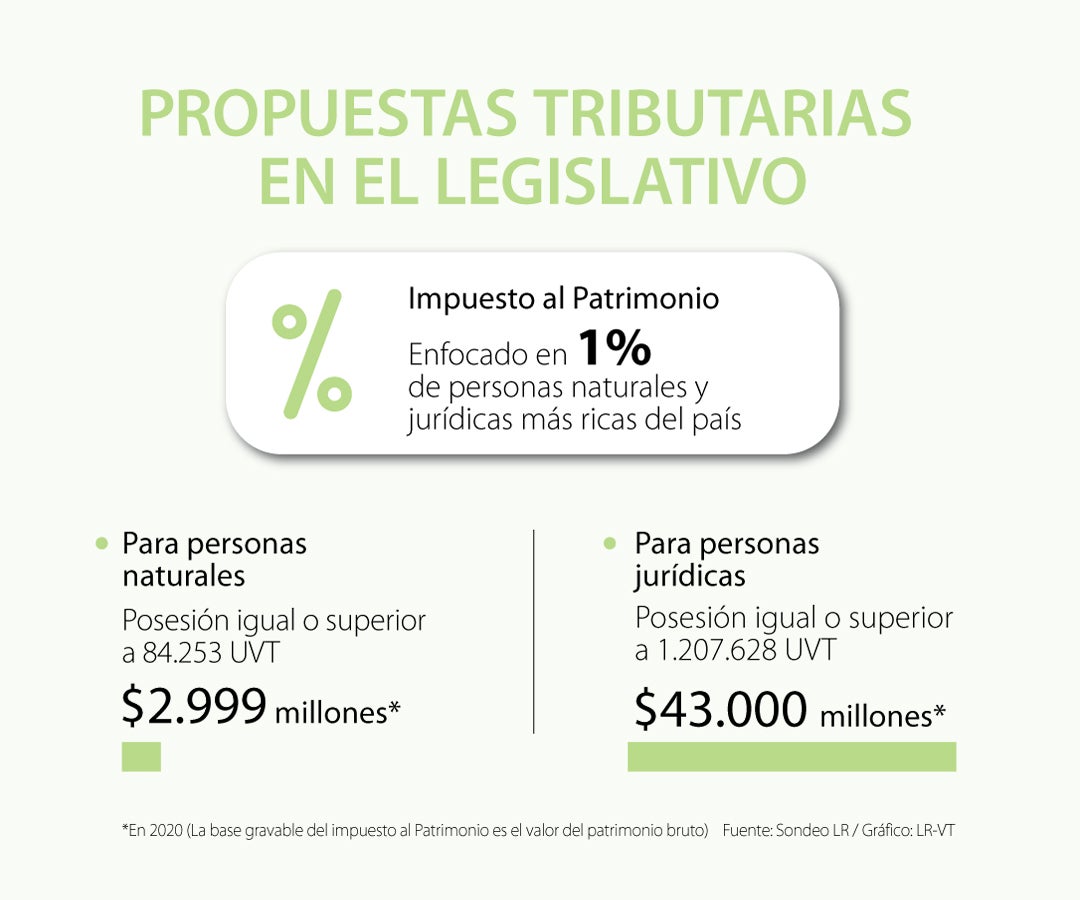 El segundo punto de la propuesta tiene que ver con el impuesto de renta y de riqueza. En este, el excodirector del Emisor también plantea ampliar la base a “una clase media que no viene aportando su debida alícuota”. La idea, según Clavijo, es que el impuesto a la renta se cobre desde la base de ganancia mensual de $3,5 millones y el de riqueza desde $720 millones en activos y no desde $5.000 millones, como actualmente se aplica.