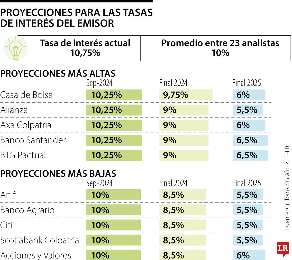 De acuerdo con la más reciente encuesta de expectativas realizada por Citibank a 23 centros de investigaciones económicas de las principales entidades financieras y analistas del mercado, el promedio espera que las tasas queden en 10%, después de la reunión de hoy.