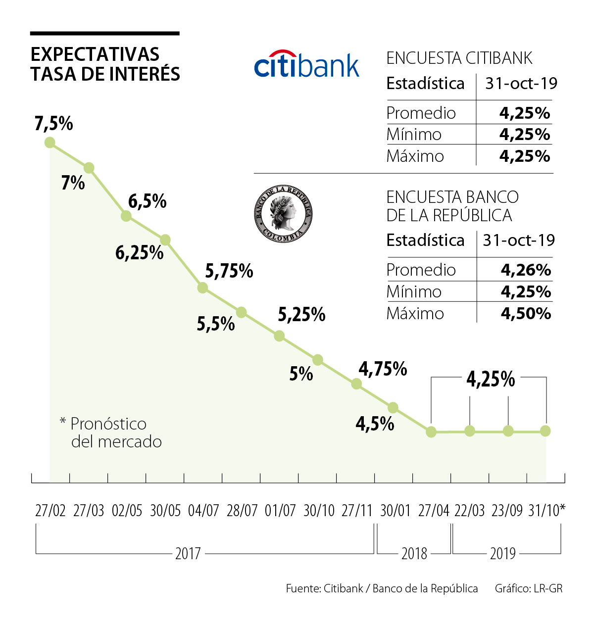 La Junta Directiva del Banco de la República se reunirá hoy, y tal como ha manifestado su intención el gerente del Emisor, Juan José Echavarría, de que las tasas de interés permanezcan estables por el mayor tiempo posible, el mercado proyecta que nuevamente la junta dejará inalterado el tipo de intervención en 4,25%.