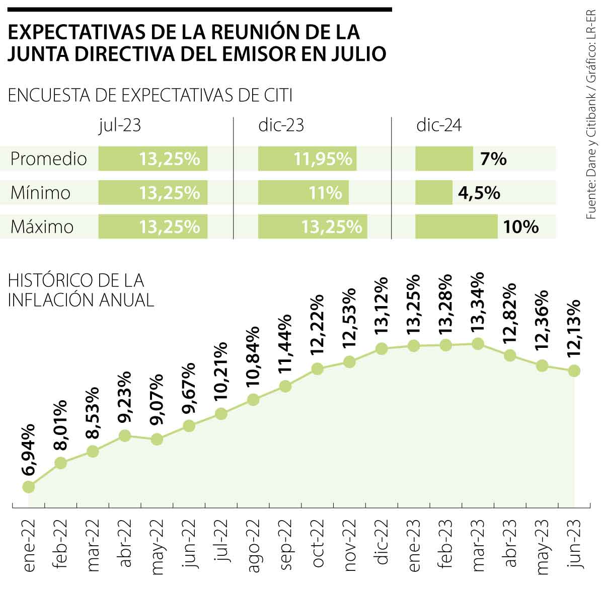 “Creemos que el Banco de la República mantendrá la tasa de interés estable en julio debido a que la inflación ha venido cediendo”, dijo Juan David Ballén, director de Análisis y Estrategia en Casa de Bolsa.