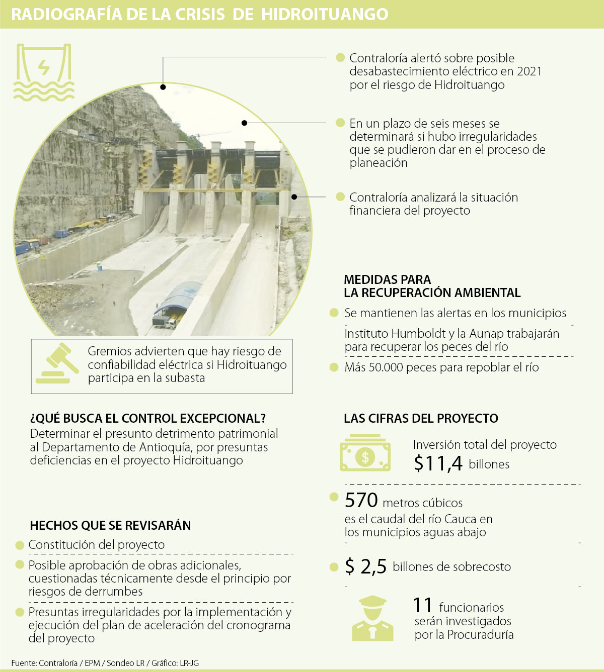 “Queremos revisar las consecuencias de la pérdida del cargo de confiabilidad. La idea es minimizar el escenario de desabastecimiento energético. Si este proyecto vuelve a entrar en la canasta de subasta (28 de febrero), es un tema que tendremos que valorar en la investigación. El país tiene muchas fuentes de energía y no puede seguir dependiendo de un agente único (Hidroituango)”, aseguró Ricardo Rodríguez Yee, vicecontralor general de la República.