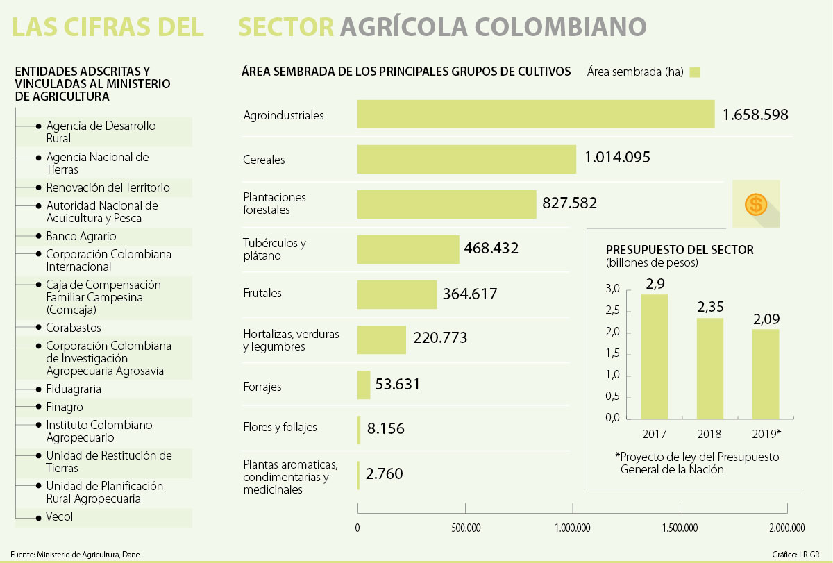 Muchas entidades que repiten funciones y problemas de precios en ciertos productos son algunos de los problemas o aspectos por mejorar que ha encontrado en el sector agropecuario el ministro de Agricultura, Andrés Valencia, quien conoce de las necesidades agrícolas, pues ha ocupado cargos en entidades como el Instituto Colombiano Agropecuario (ICA), la Federación Nacional de Cafeteros y la Federación Nacional de Avicultores de Colombia (Fenavi).