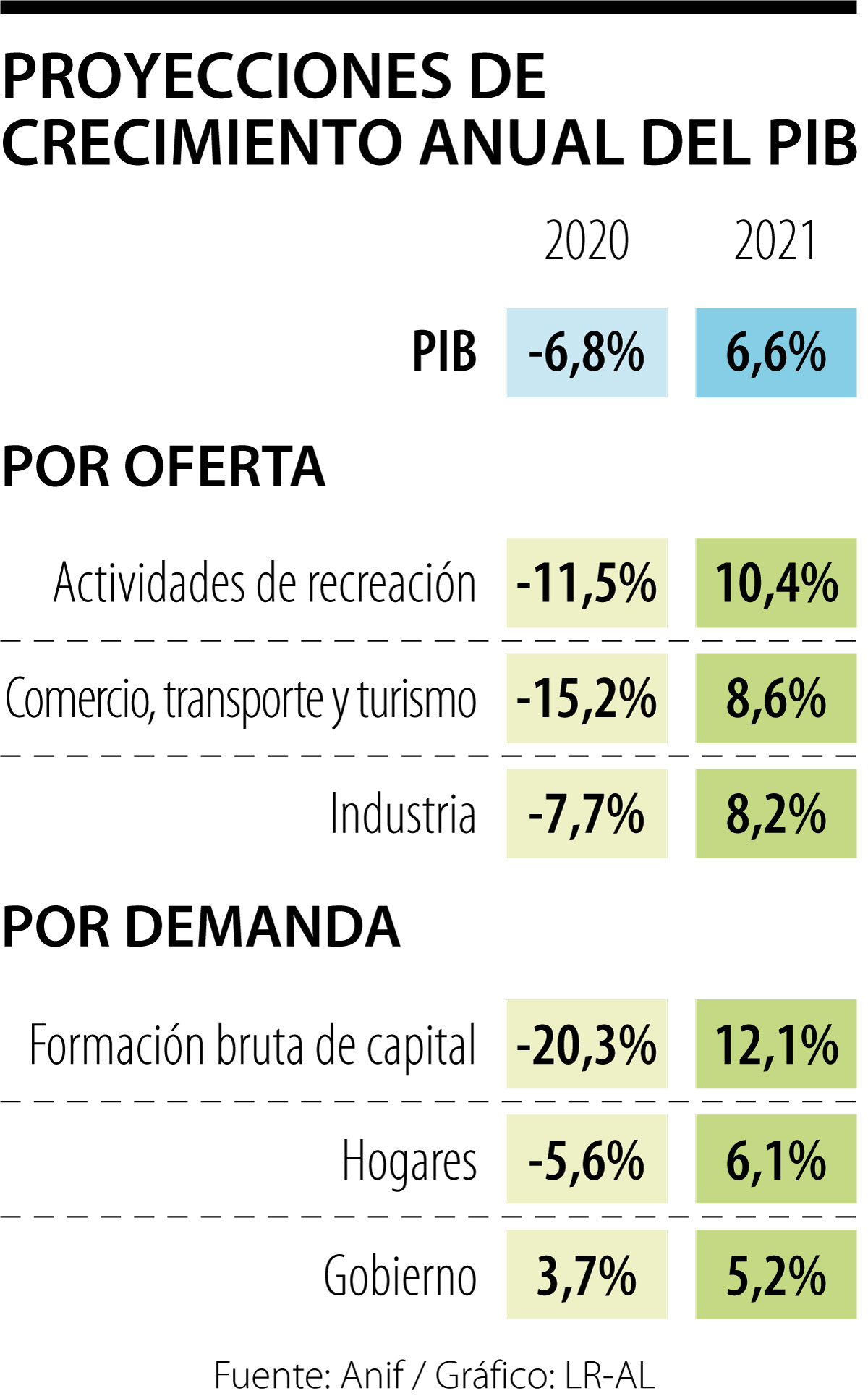 El centro de estudios económicos Anif mejoró la proyección para este año del crecimiento anual del PIB del país, al incrementarla de 4,3% a 6,6%.
