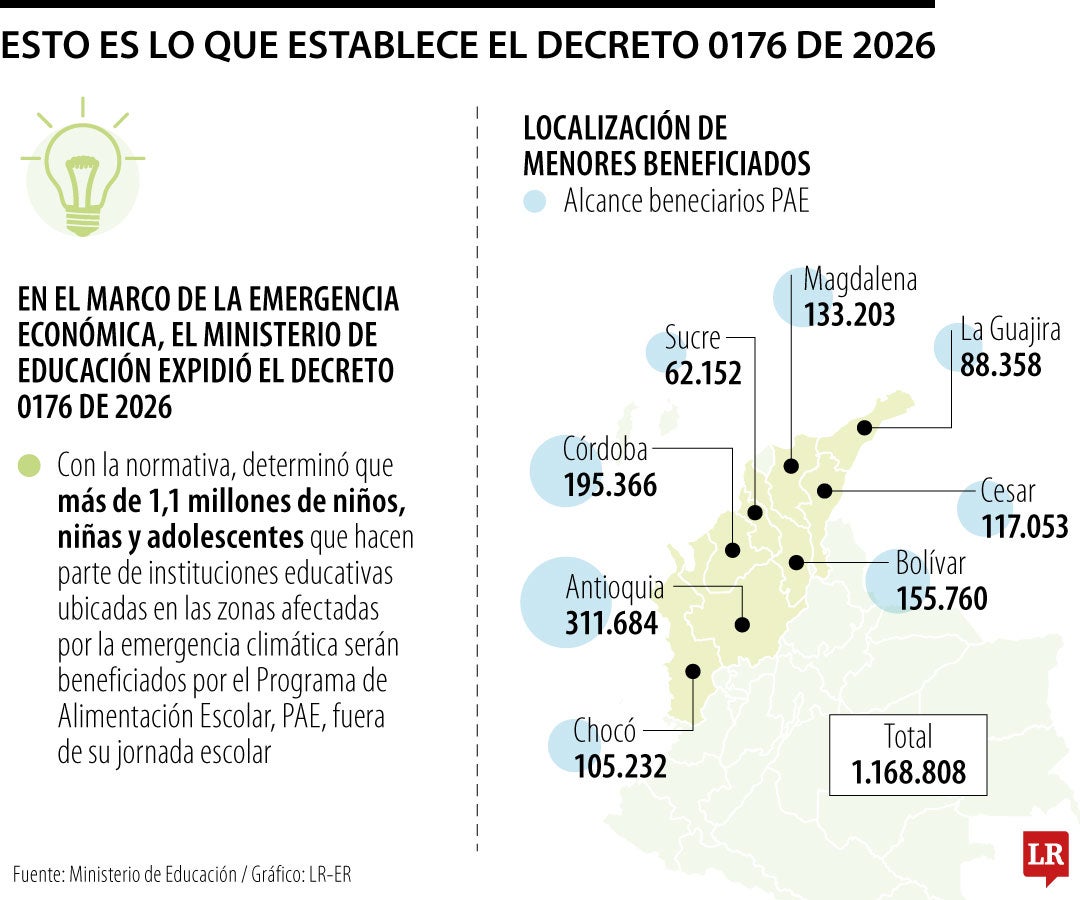 El Ministerio de Educación expidió el Decreto 0176 de 2026 para entregar alimentación a menores afectados por la emergencia climática
