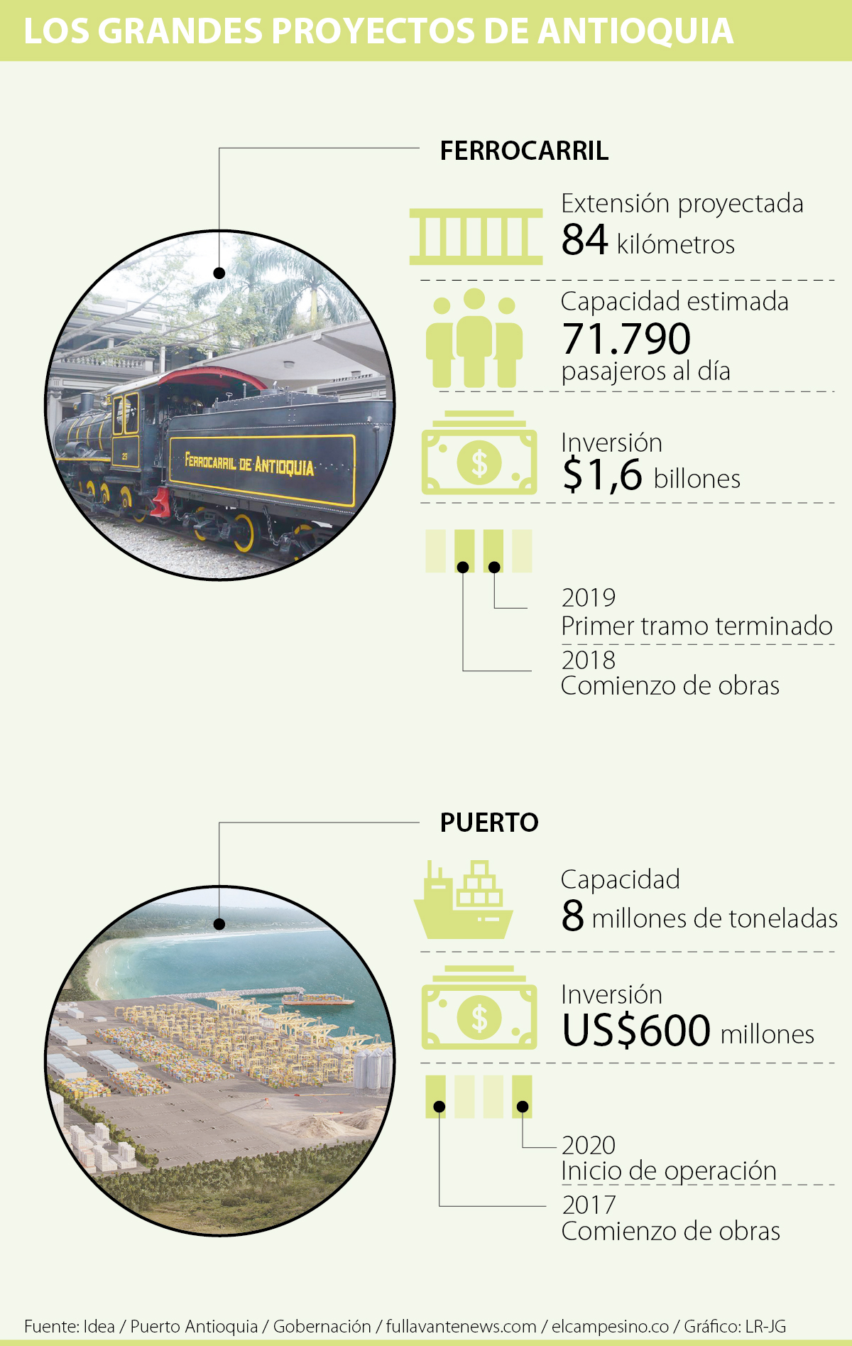 El ferrocarril de Antioquia es una obra de 84 kilómetros de extensión, que tendrá una capacidad de movilización de 71.790 pasajeros al día. El comienzo de obras se realizaría en los primeros meses de 2018.