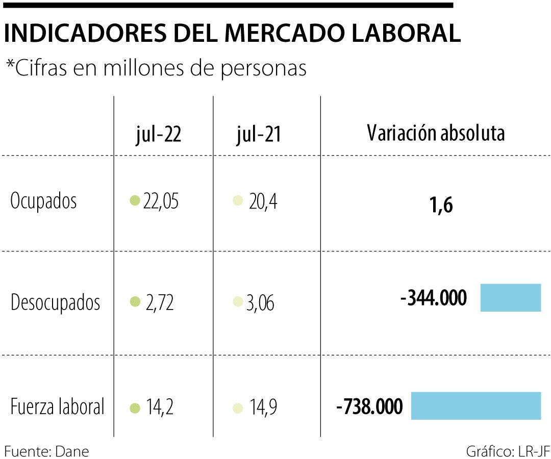 El Departamento Administrativo Nacional de Estadística (Dane) publicó su informe de Mercado Laboral para julio de 2022, en el que destacó que el número de desocupados llegó a 2,7 millones y la tasa de desempleo se ubicó en 11%.