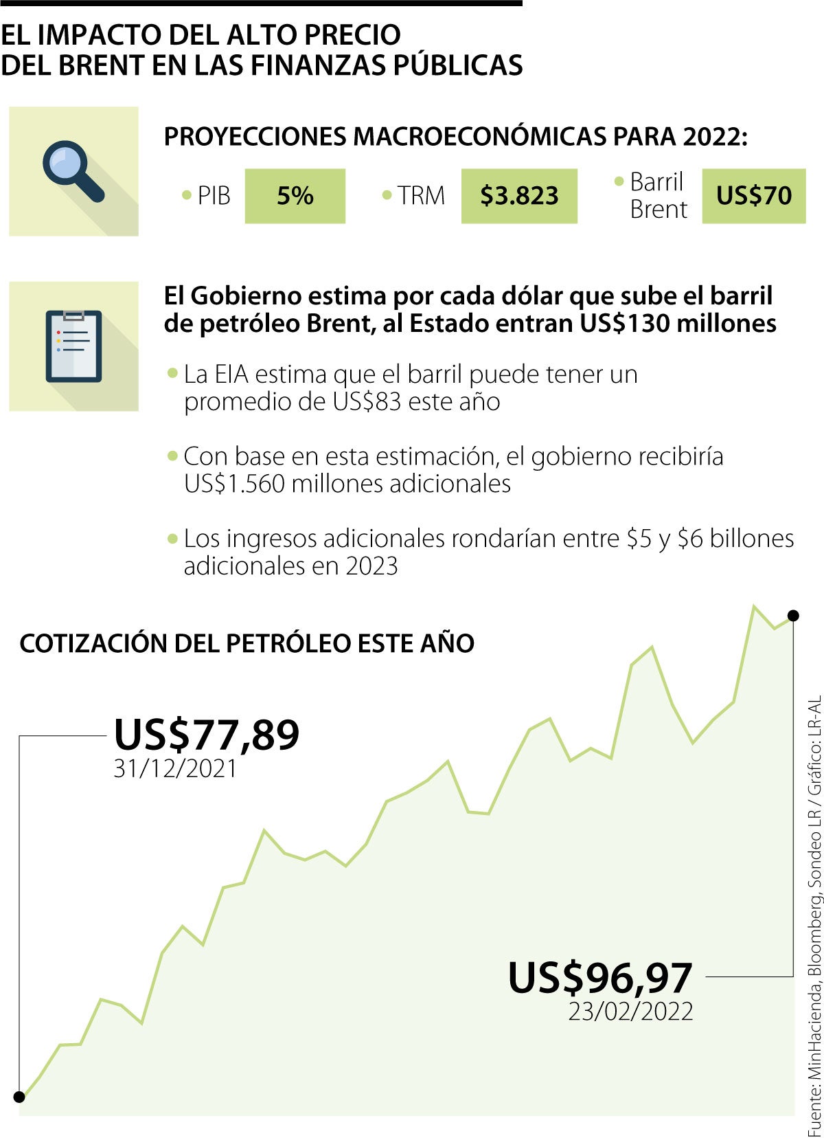 Este año el Gobierno Nacional hizo sus cuentas fiscales bajo el supuesto de que el barril de petróleo de referencia Brent se ubicaría en promedio en US$70. Esto pese a que desde inicio de año, el crudo de referencia para Colombia ha estado por encima de ese precio y ha llegado incluso a más de US$97.