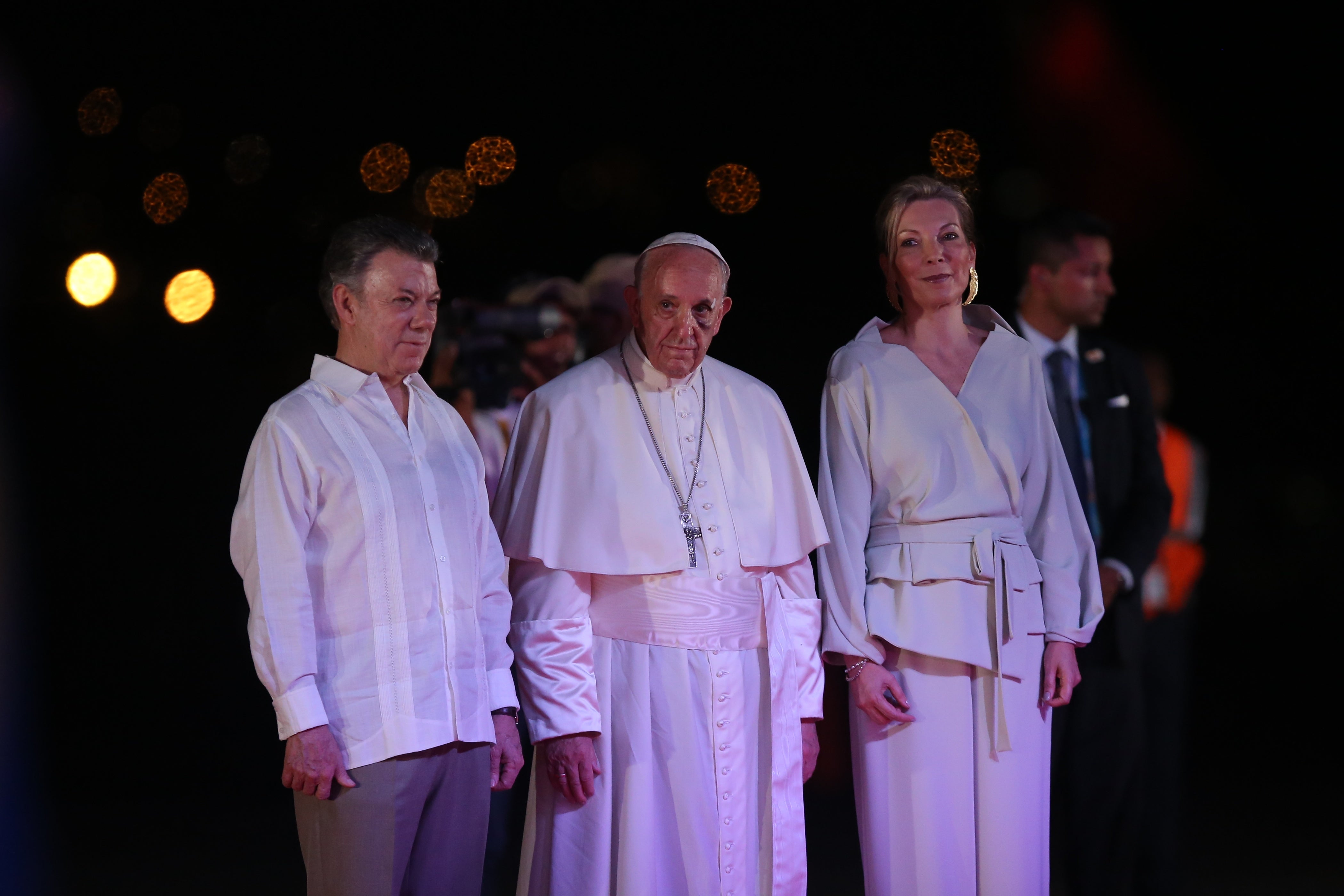 Finalmente, Francisco partió del Aeropuerto de Cartagena, despedido por el presidente de la República, Juan Manuel Santos y su esposa, Maria Clemencia, al igual que por un grupo de bailarines que evocaron el Carnaval de Barranquilla. El presidente agradeció a todos los que hicieron parte de este gran despliegue logístico y a las personas que esperaron por horas las intervenciones del Pontífice.