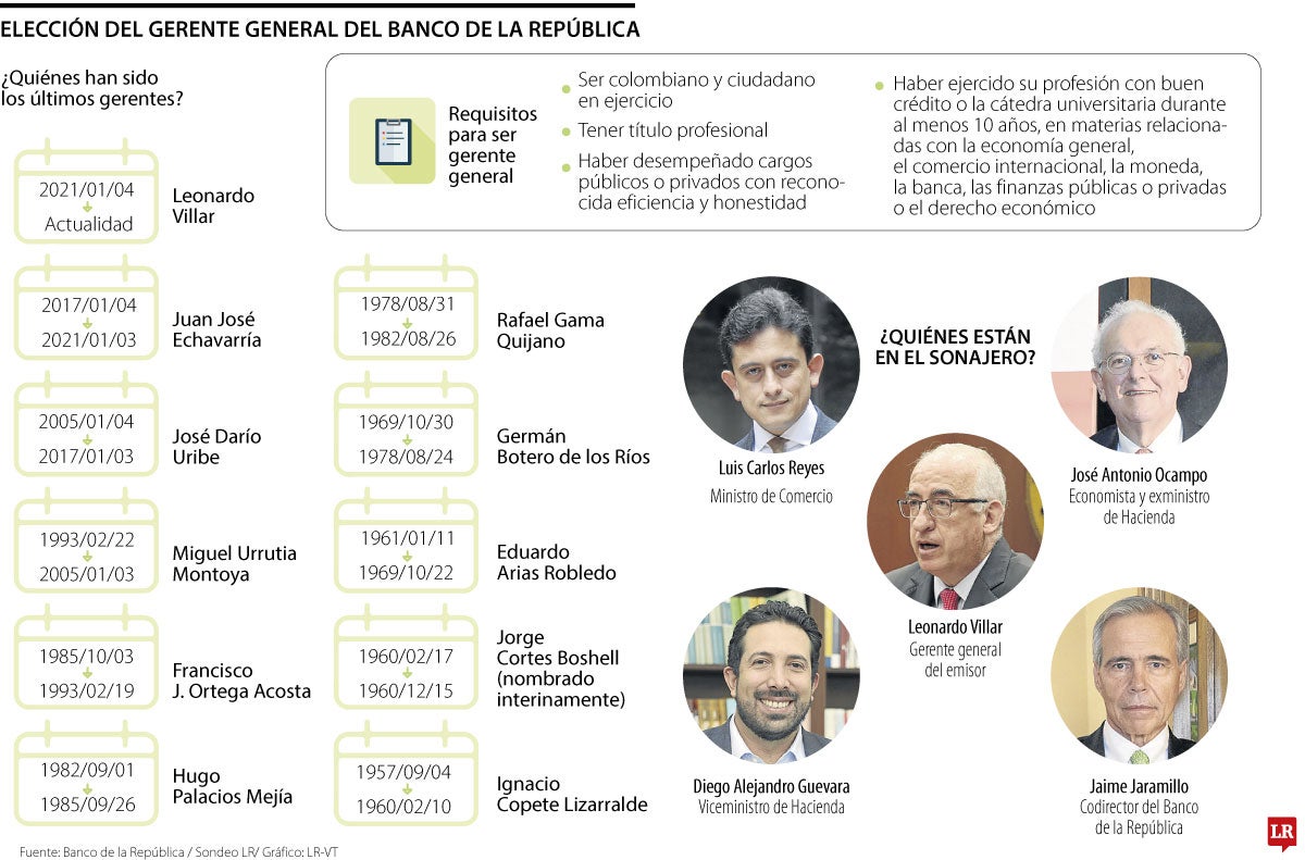 Los últimos 11 gerentes han sido reelegidos, al menos una vez, y aunque los analistas apuestan por Leonardo Villar, hay otros candidatos sonando