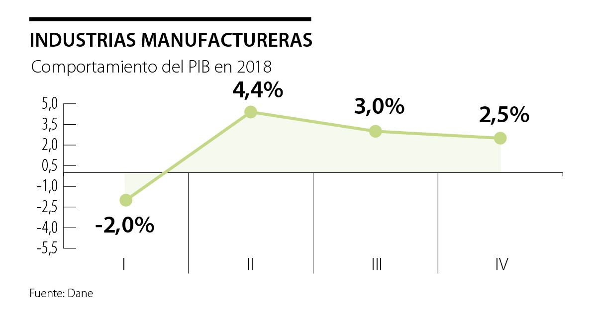 Si bien en el primer trimestre de 2018 la industria estuvo en terreno negativo, el sector ha venido recuperándose. Según el presidente de la Andi, Bruce Mac Master, “seguramente el sector va a estar en un nivel similar a este año” al comportamiento que pronostican en general para la economía al cierre de 2019: entre 3,5% y 3,6%.