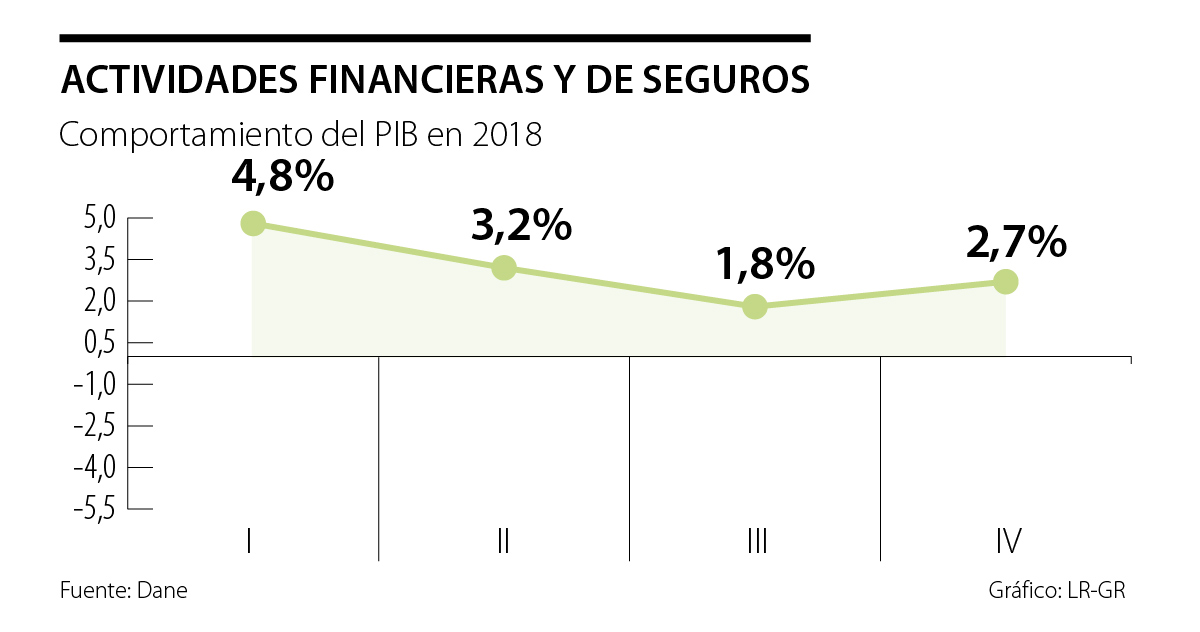 El sector financiero se caracteriza por ser uno de los más estables en materia de crecimiento en el PIB. Desde Asobancaria se proyecta que el crecimiento del PIB será de 3,2% en 2019, y que la cartera del sector bancario presentará un crecimiento cercano a 4,5% real durante el año impulsada principalmente por el segmento comercial.