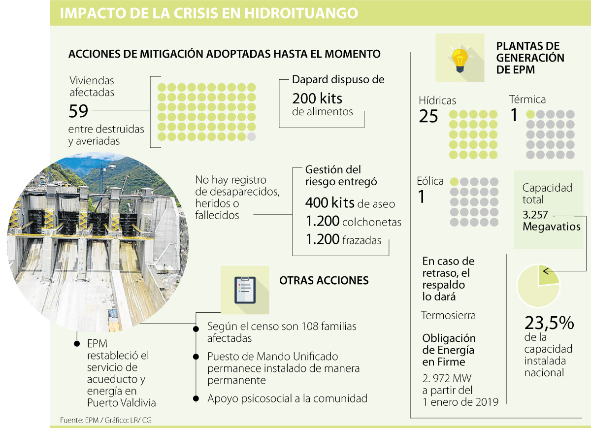 Ahora, con las dificultades que han atenuado la crisis del proyecto expertos del sector energético advirtieron a LR que “todas las proyecciones estaban bajo el supuesto de que Hidroituango entraba en operación”, hecho que parece más distante por los problemas de evacuación en el cuarto de máquinas.