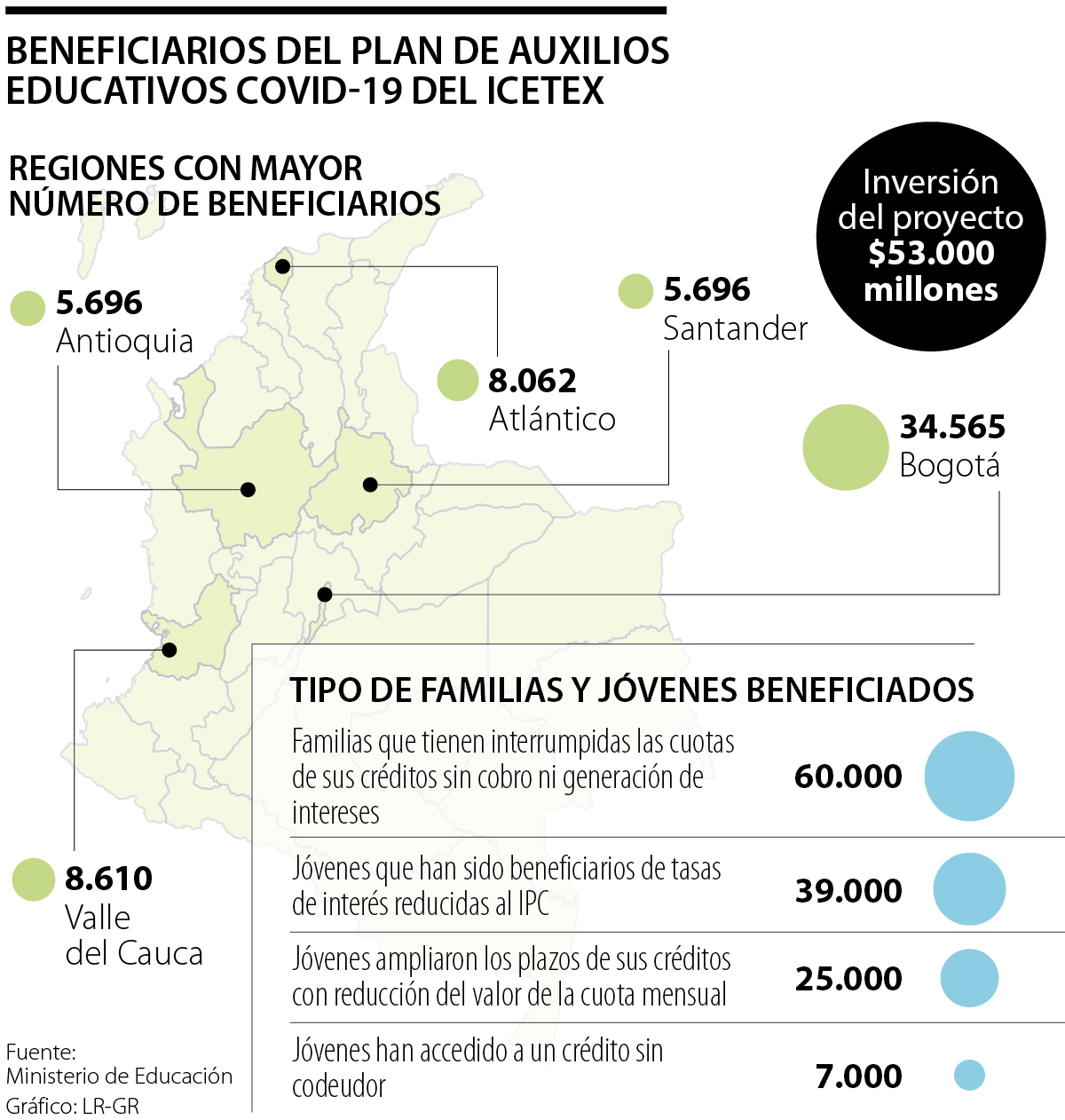 Según el Ministerio de Educación, la ampliación de este plan garantizará la continuidad del auxilio, hasta diciembre, a cerca de 130.000 usuarios del Icetex ubicados en los 32 departamentos del país, y que ya reciben este beneficio. Desde el Gobierno, también se informó que se ampliará a 20.000 beneficiarios más este programa, llegando así a 150.000 estudiantes de todo el territorio nacional.