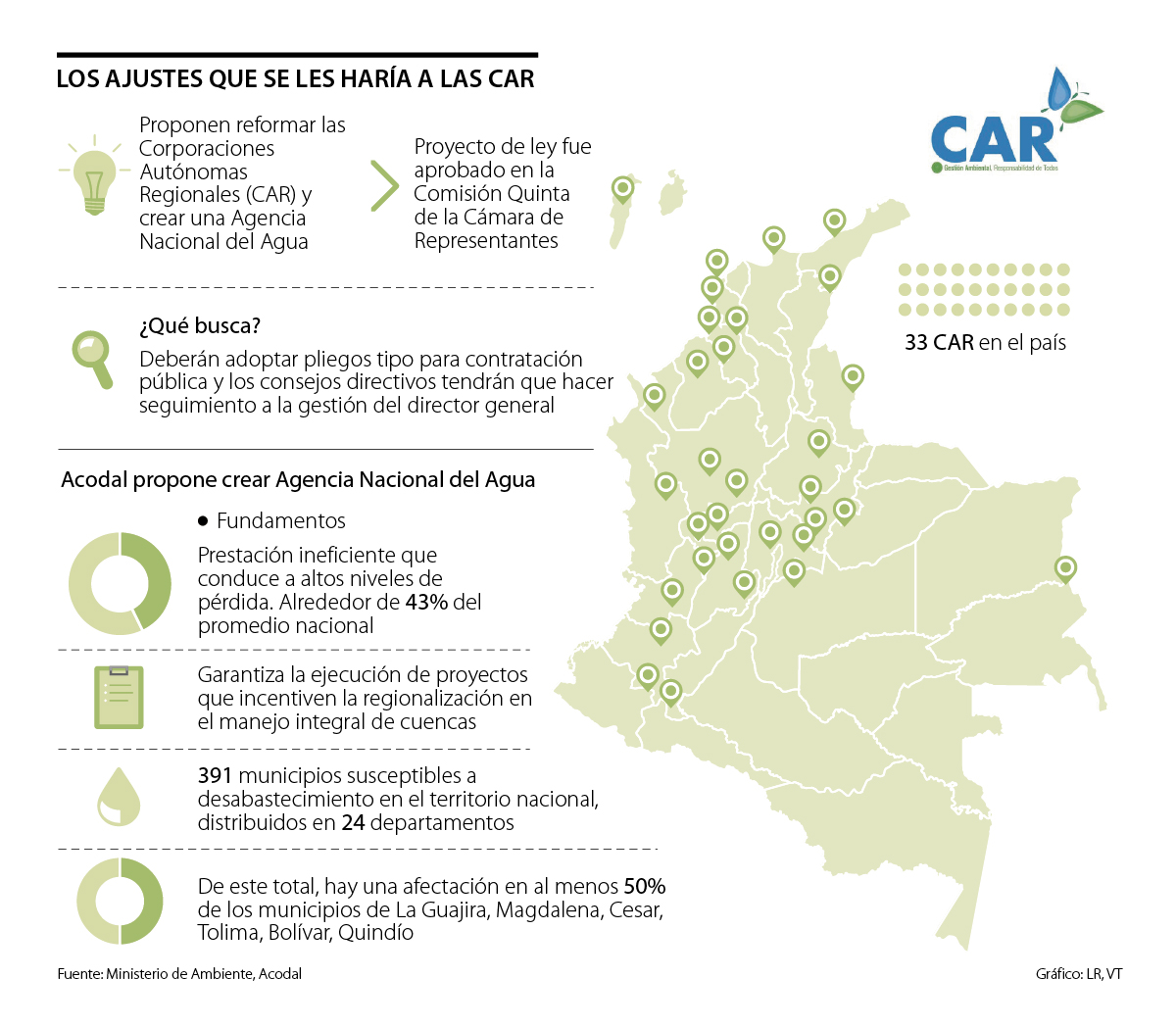 Es importante resaltar que según el más reciente Estudio Nacional del Agua en este momento hay 391 municipios susceptibles a desabastecimiento en el país. Estos están distribuidos en 24 departamentos, de los cuales hay una alta afectación en al menos 50% de sus municipios de La Guajira, Magdalena, Cesar, Tolima, Bolívar, Quindío, Santander, San Andrés y Providencia y Valle del Cauca. Con estos ajustes, dichos territorios reducirían sus líos de abastecimiento, pues se daría un mayor control institucional.