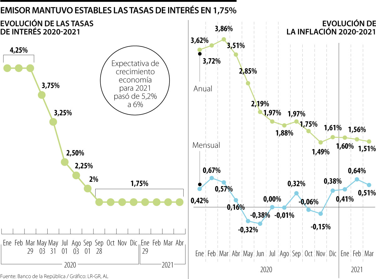 En su cuarta sesión del año, la Junta Directiva del Banco de la República decidió, por mayoría, mantener inalterada la tasa de referencia de la economía en 1,75%, con lo que completaría siete meses en este nivel.