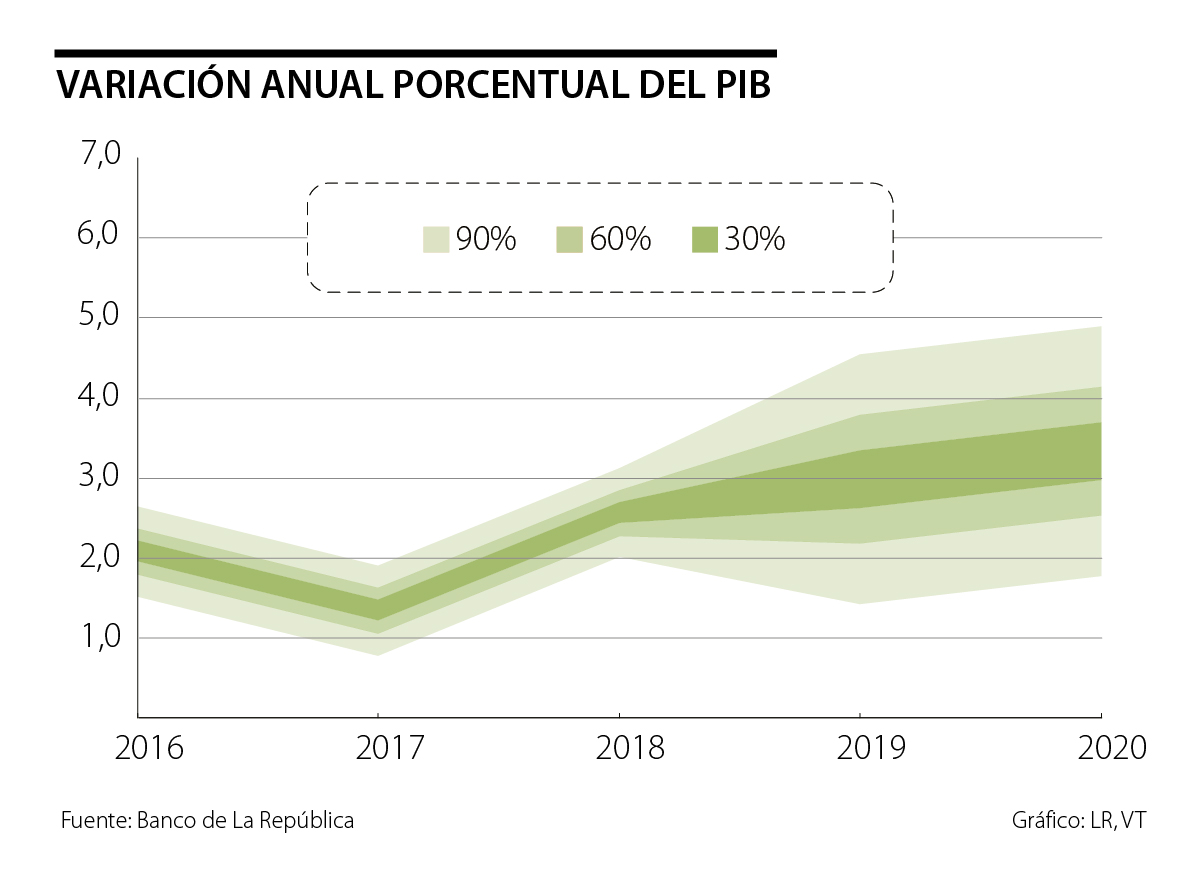 La estimación del crecimiento económico se revisó a la baja debido a los efectos negativos de una mayor incertidumbre global sobre las decisiones de inversión. Además, se espera una desaceleración del consumo público debido al recorte contemplado en el anteproyecto del Presupuesto General de la Nación, y a los cambios de administración en los gobiernos locales y regionales, que es común en el primer año de gobierno.