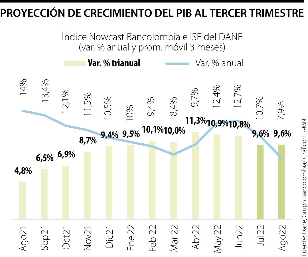 Precisamente, sobre el comportamiento mensual. Bancolombia detalló que "La serie ajustada estacionalmente de nuestro indicador revela que la actividad productiva registró un crecimiento secuencial de 1% en agosto, luego de retroceder 0,1% en julio. Este avance de corto plazo sugiere que el aterrizaje de la economía colombiana está ocurriendo gradualmente".