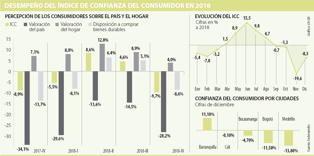 A pesar de la caída experimentada en los últimos meses del Índice de Confianza del Consumidor (ICC), en diciembre el indicador mensual que presenta Fedesarrollo se recuperó 11,3 puntos porcentuales respecto al mes anterior y quedó en -8,3%. Los consumidores de Barranquilla son los más optimistas de las cinco ciudades principales que toma en cuenta la Encuesta de Opinión del Consumidor (EOC).