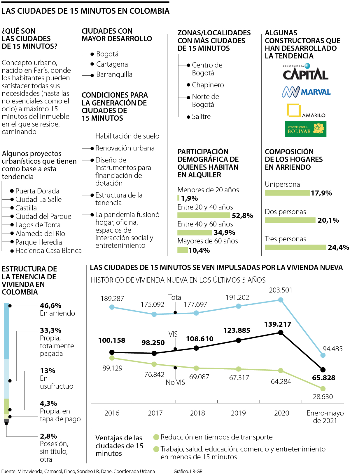 En el último lustro, el rubro constructor ha descubierto nuevas tendencias demográficas que marcan los planes de generación de proyectos. Entre estas, una de las principales son las ciudades de 15 minutos, donde Bogotá, Cartagena y Barranquilla son las urbes que más tienen desarrollo de este modelo en Colombia.