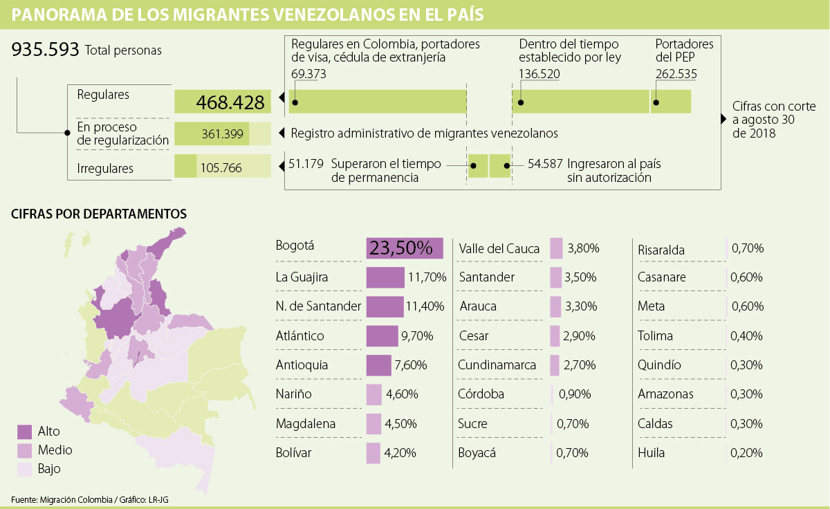 El país ha tenido que irse adaptando entonces para la recepción de las personas que se han desplazado desde el vecino país. Según Migración Colombia, solo 468.428 de ellos están en estatus regular en el país, 361.399 en proceso de regularización y 105.766 son irregulares.