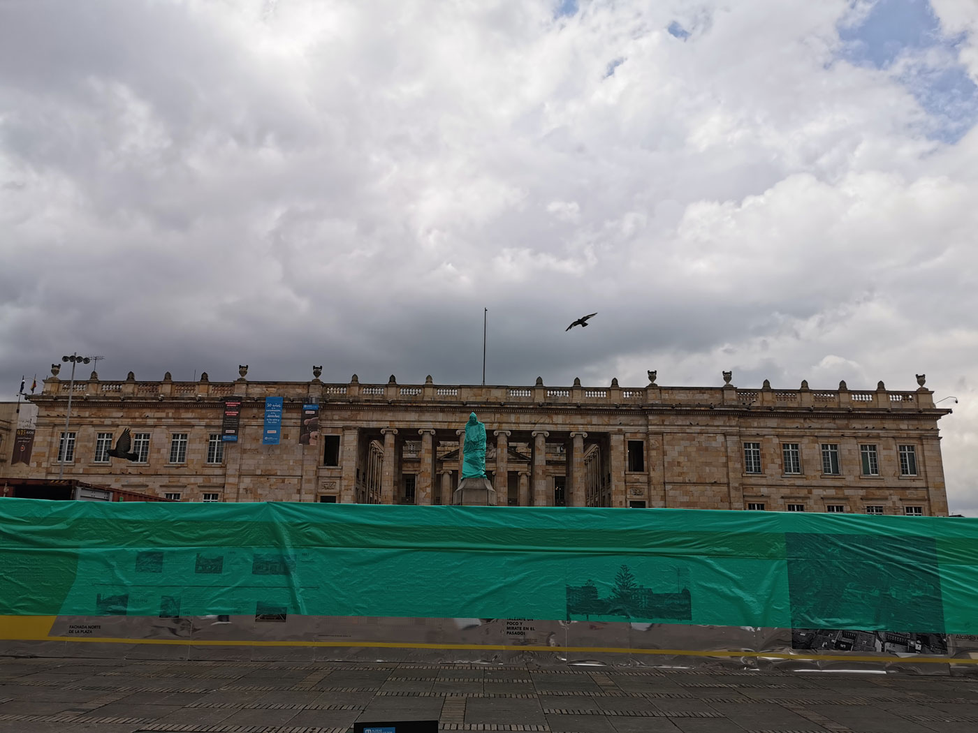 Hasta la escultura de Simón Bolívar tuvo que ser intervenida por ser el escenario principal de las protestas.