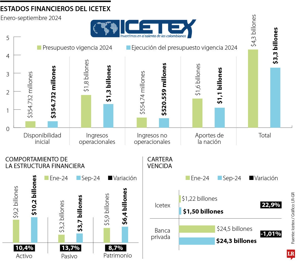 Tomando las cifras del informe de gestión de este año, la cartera vencida del Icetex pasó de $1,22 billones en enero hasta $1,50 billones en septiembre. Es decir, en este lapso de nueve meses se registró un deterioro de 22,9% del indicador.
