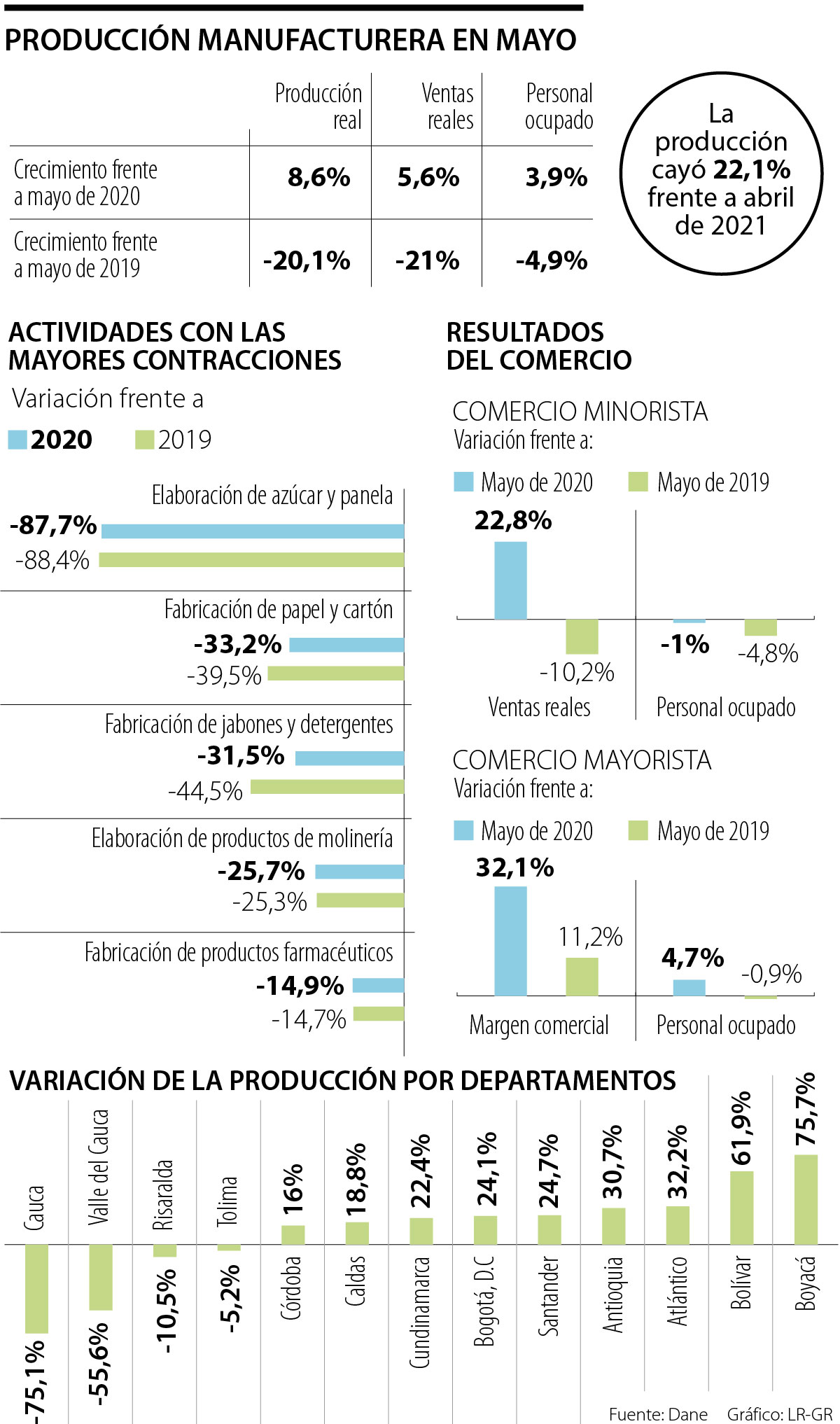 Y es que, precisamente, las mayores contracciones en la producción se registraron en los departamentos en donde el paro y los bloqueos se vivieron de manera más álgida.