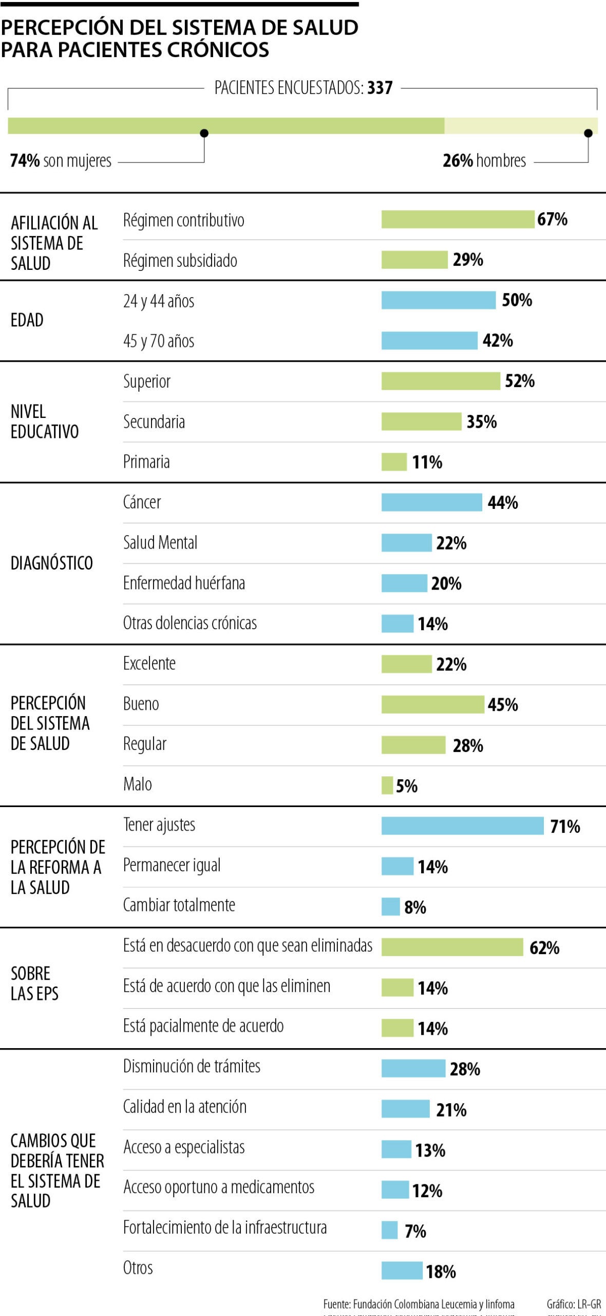 Uno de los problemas que más aquejaban las organizaciones es el modelo de atención mediante los Caps, lo que significaba un proceso de transformación de las EPS y que, precisamente, no se mencionaba que pasarían con los pacientes con atención prioritaria. Sobre esto, la Fundación Colombiana de Leucemia y Linfoma realizó una encuesta a más de 300 pacientes sobre el sistema de salud actual, la reforma y los principales cambios que creen que debería tener el sistema (si lo creen).
