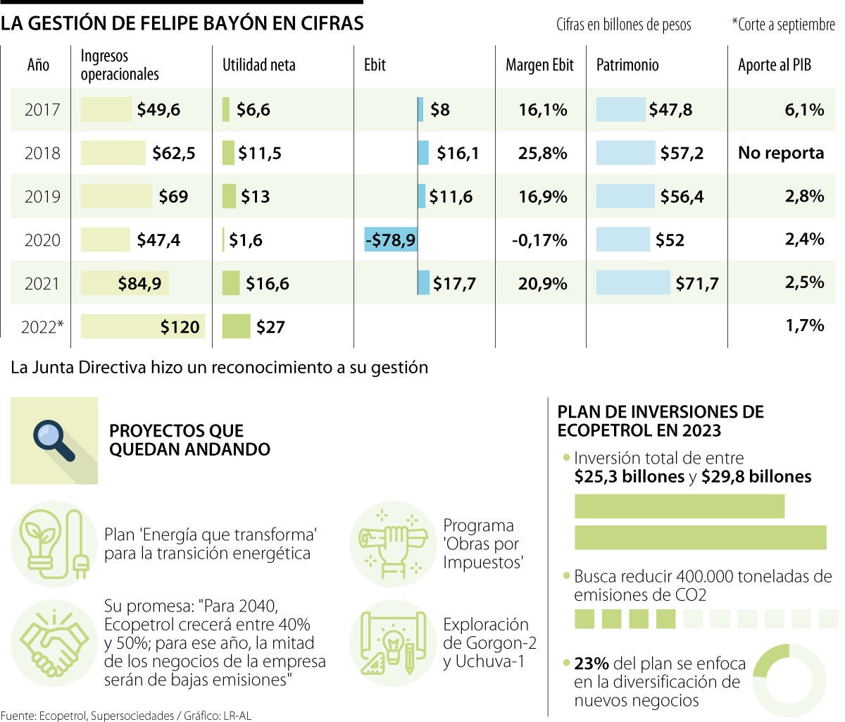 Y aunque actualmente el aporte a la economía nacional bajó, Ecopetrol se ha transformado en los últimos años y ha diversificado sus negocios, lo que da entrada a nuevos proyectos y metas que quedaron de la gestión de Bayón.
