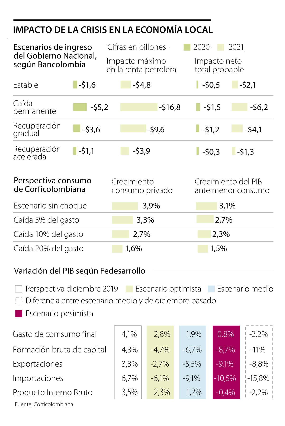 José Ignacio López, director de investigaciones de Corficolombiana, prevé que si la caída del gasto es de 20%, el crecimiento del consumo privado será de 1,6%, por lo que el PIB variaría apenas 1,5%.