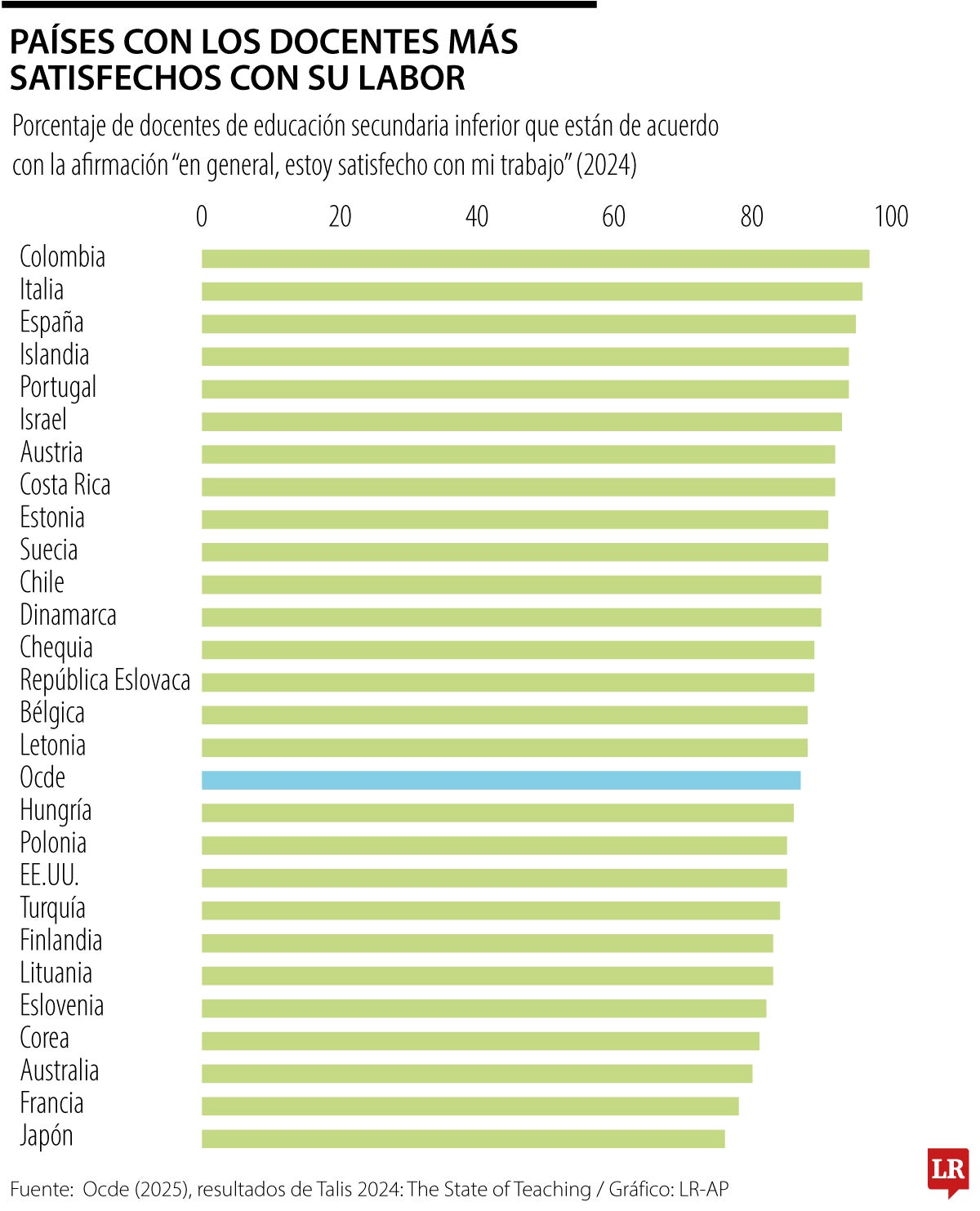 Un estudio de la Organización para la Cooperación y el Desarrollo Económico, Ocde, reveló que Colombia es el país en donde los profesores se sienten más satisfechos con su labor.
