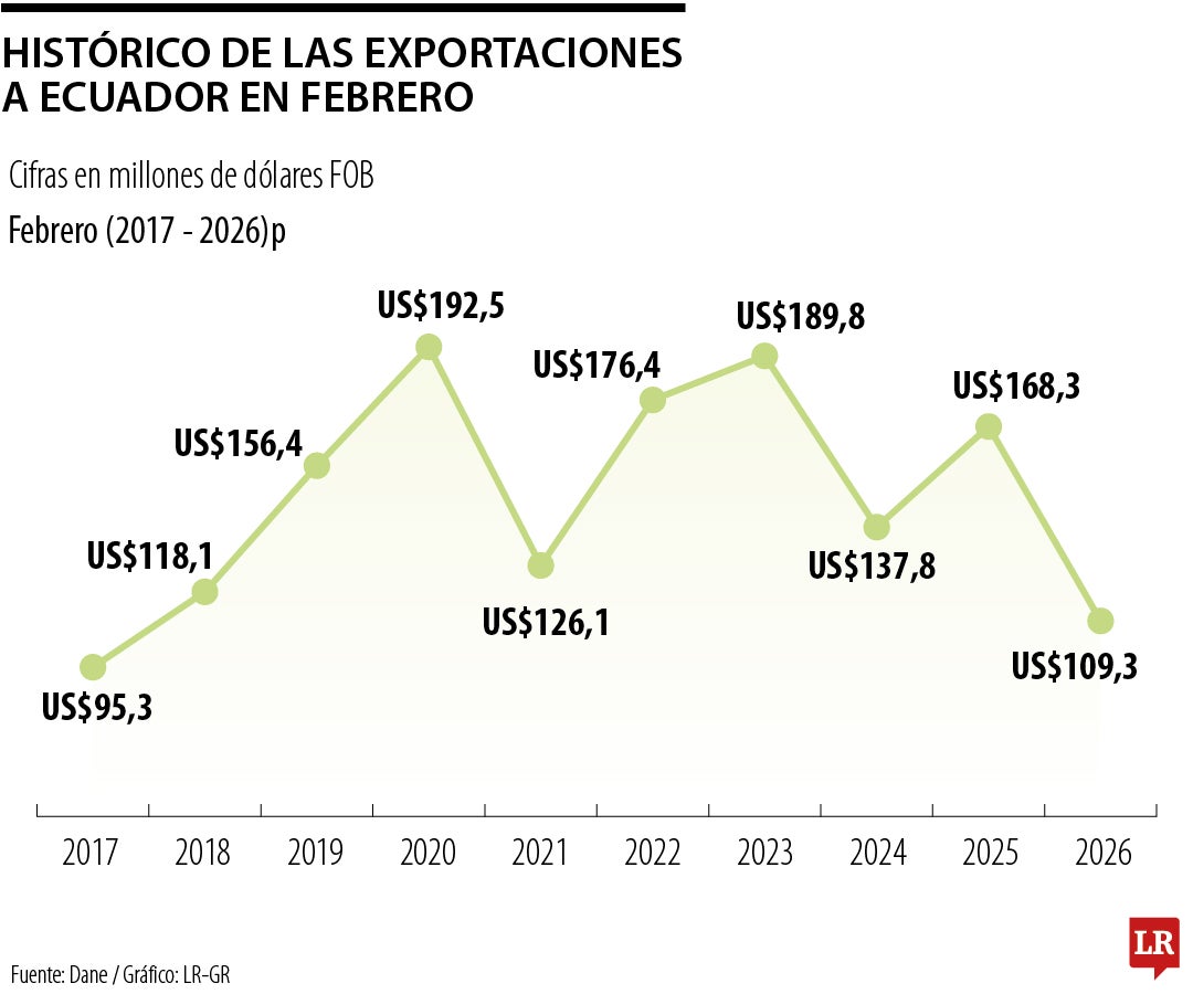 Los efectos de la guerra arancelaria ya se sintieron en los datos de febrero. Según el Dane, las exportaciones en el segundo mes del año se ubicaron en US$109,3 millones, la segunda cifra más baja de los últimos 10 años, solo por encima de 2017, cuando alcanzaron US$95,3 millones en ese mismo mes.