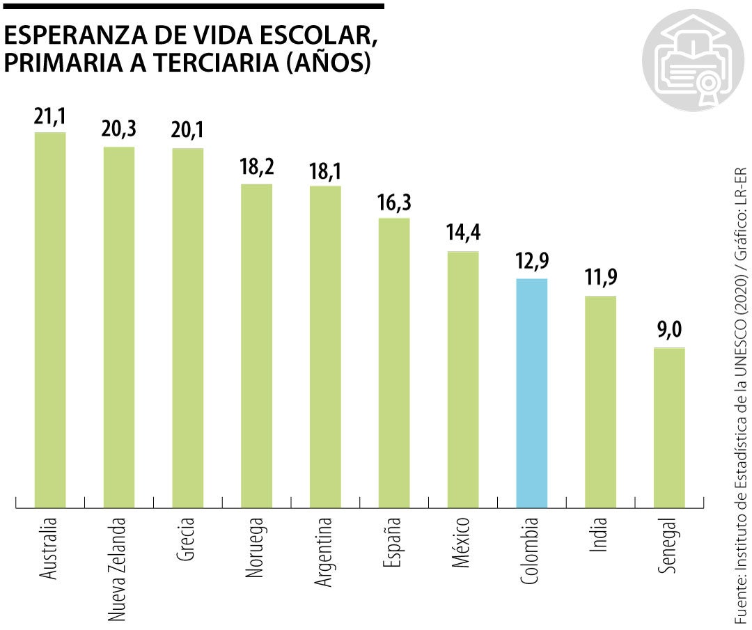El reporte encontró que 73% de los estudiantes de grado 11 quiere conocer más información sobre el paso a la educación superior, pero no sabe cómo obtenerla. Igualmente, 8,4% de los hogares tienen por lo menos un miembro de su hogar mayor de 15 años que no sabe leer ni escribir a luz del Dane. Y en 2021 hubo un aumento de 5,7% de matriculados respecto respecto al 2020, lo que indica una recuperación en la retención escolar del sistema educativo, así lo calculó el cálculos CPC por el Snies de 2020. Y concluye que otra cifra preocupante está en que solo 30,3% de los jóvenes entre 25 y 34 años cuenta con educación superior.