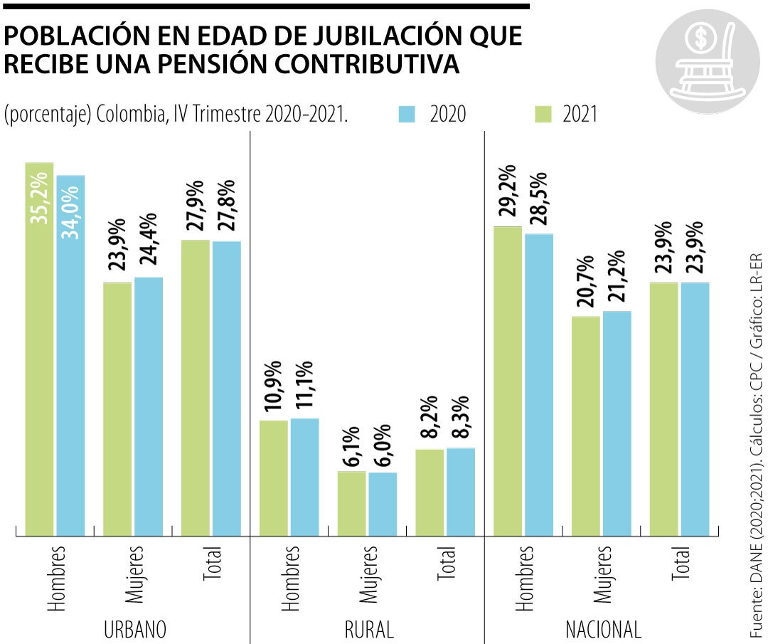 Por eso en el CPC entregaron un balance en este sector. Lo primero es que en 2021 solo una de cada cuatro personas en edad de jubilación recibió una pensión contributiva. Adicionalmente, 65,4% de los subsidios están focalizados en el quintil más alto de ingresos (y la reciente reforma tributaria que se aprobó no logró incluir el impuesto que iba pensado en esas personas con mesadas de más de $11 millones al mes). Por cuenta de ese último punto, en 2021 el gasto en pensiones del Gobierno Nacional Central fue de 3,7% del PIB.
