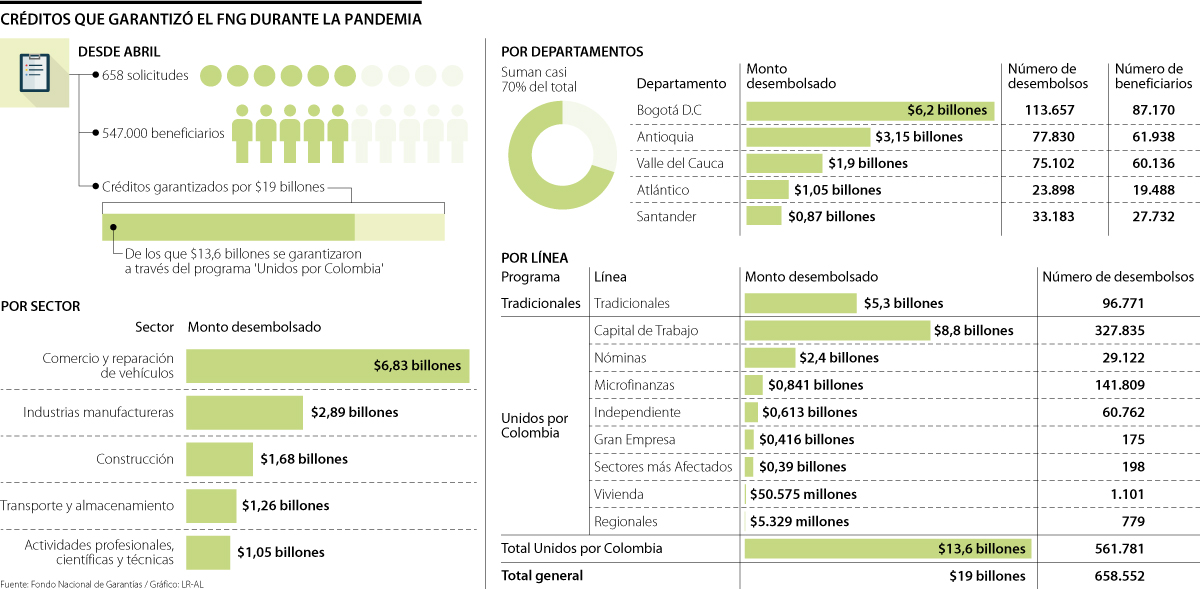 Según el FNG, desde el inicio de la pandemia se han garantizado créditos por $19 billones. En Bogotá se concentra 32,7% del total