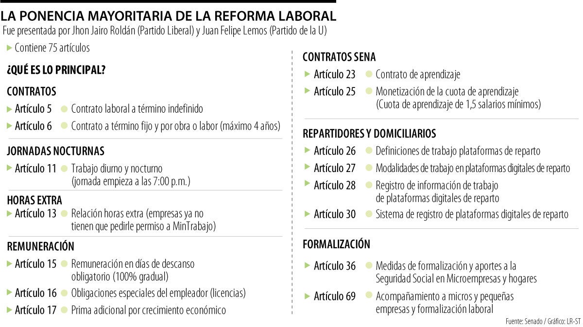 En total, fueron 55 artículos aprobados en esta primera etapa. Se destaca los ajustes a los contratos, la prima por crecimiento, los contratos agropecuarios, para periodistas y la vinculación laboral de los repartidores y trabajadores de aplicaciones de domicilios.