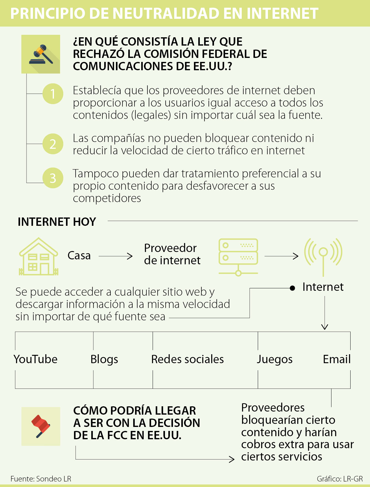 Con la decisión de la FCC, entonces, el operador de internet (IPS) podría entrar a gestionar el tráfico, es decir, podría bloquear, reducir la velocidad de cierto tráfico en internet o dar tratamiento preferencial a su propio contenido para desfavorecer a su competencia.