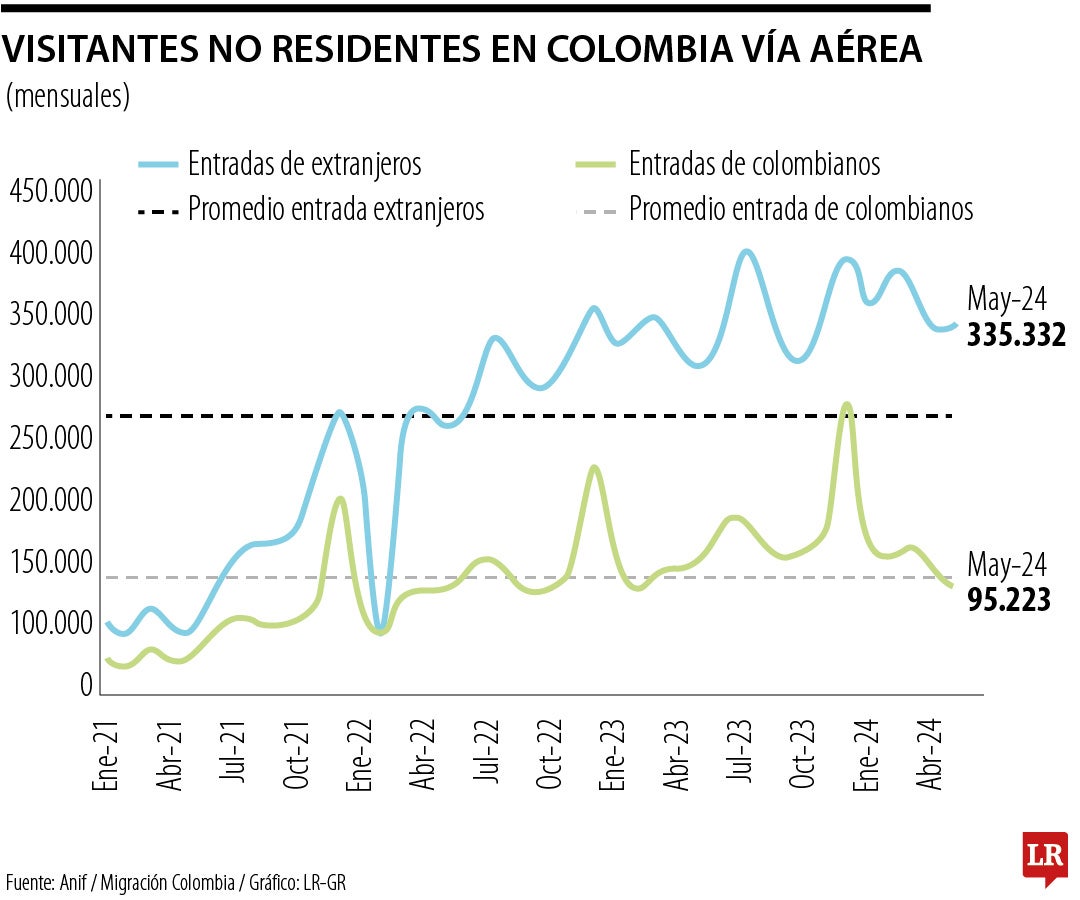 A la vez, afirmó que hubo más de 430.000 entradas de visitantes no residentes en mayo, lo que fue jalonado por el incremento en 12,3% en visitantes extranjeros; igualmente, en mayo registró un incremento de 8,4% frente al mismo lapso de 2023.