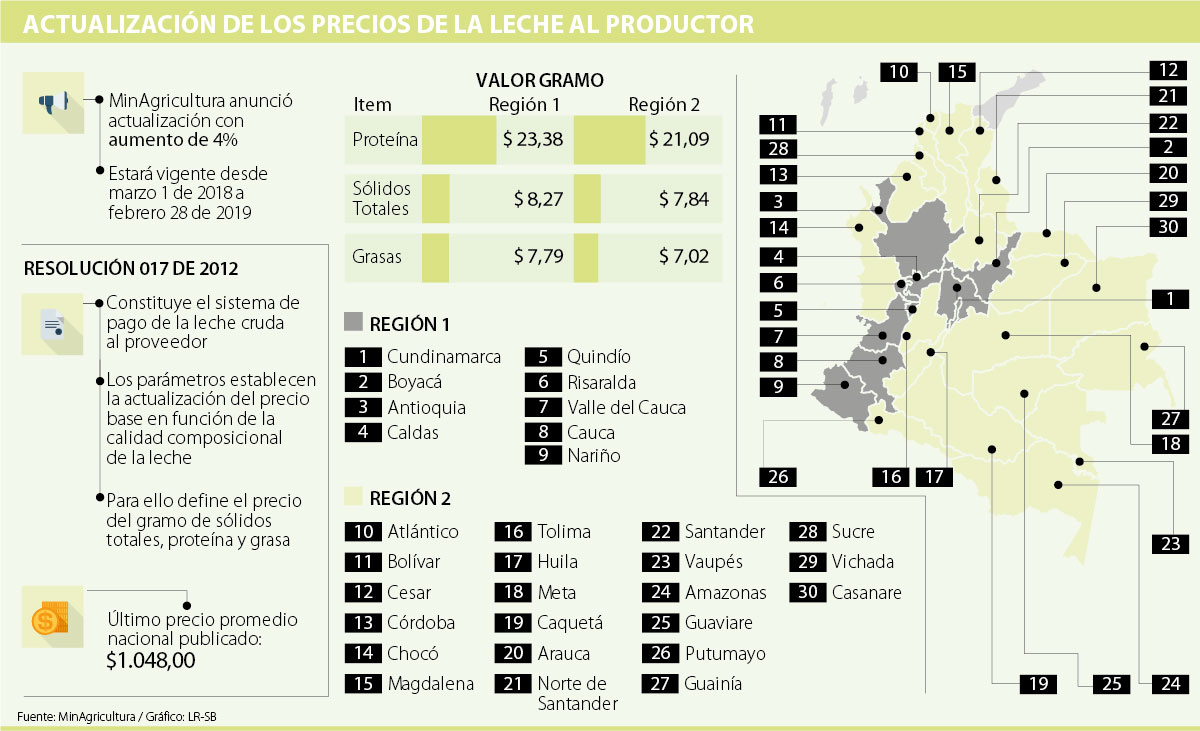 Para el Gerente General de la Asociación Nacional de Productores de Leche, (Analac), Javier Ardila, reclamar sobre el nivel del ajuste “no va a lugar”, pues en otras ocasiones la fórmula usada para calcular el aumento, cuyos parámetros establecen la actualización del precio base en función de la calidad composicional de la leche, ha favorecido al sector.