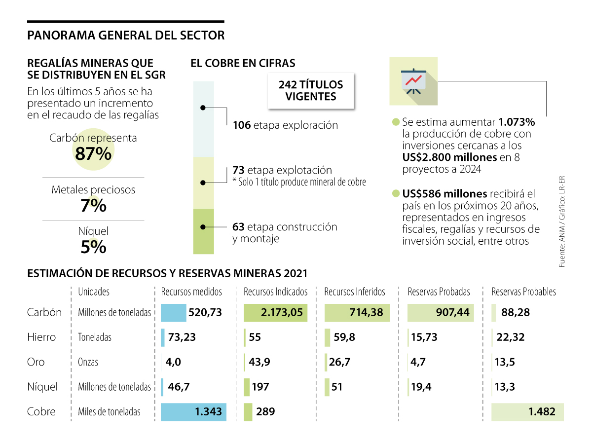 “Le queremos apostar al oro y duplicar la producción de los títulos de oro. Creo que estos dos trimestres van a estar duros en producción, y el oro va a sacar la cara por la producción. Si logramos que los proyectos de interés nacional entren y cumplan su plan de producción, en este Gobierno se lograría duplicar la producción de oro, se generarían 12.000 empleos adicionales y eso nos permitirá, por ende, generar mayores recursos al sistema general de regalías”, dijo Daza.