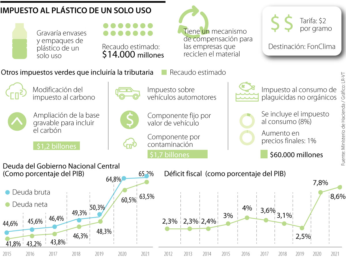 Este gravamen a los plásticos de un solo uso está dentro de un grupo de propuestas de impuestos verdes con los que el Gobierno busca internalizar los costos de la contaminación global y local. Dentro de esta categoría también está el impuesto a los vehículos automotores y al consumo de plaguicidas.