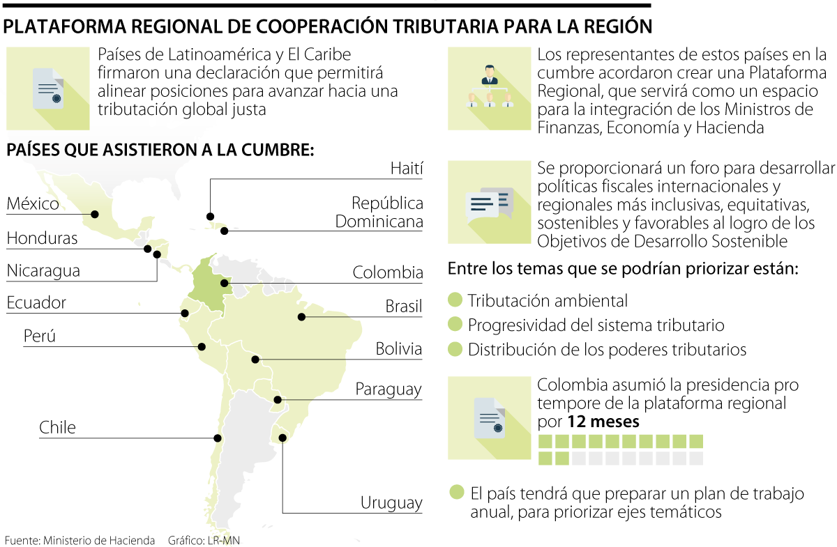 “Esta cumbre tiene como objetivo propiciar un acuerdo de voluntades entre 16 países, al cual seguramente van a llegar más, con el cual tengamos una posición unificada en América Latina y el Caribe en escenarios como Naciones Unidas, la Ocde y otros”, dijo Ricardo Bonilla, ministro de Hacienda.