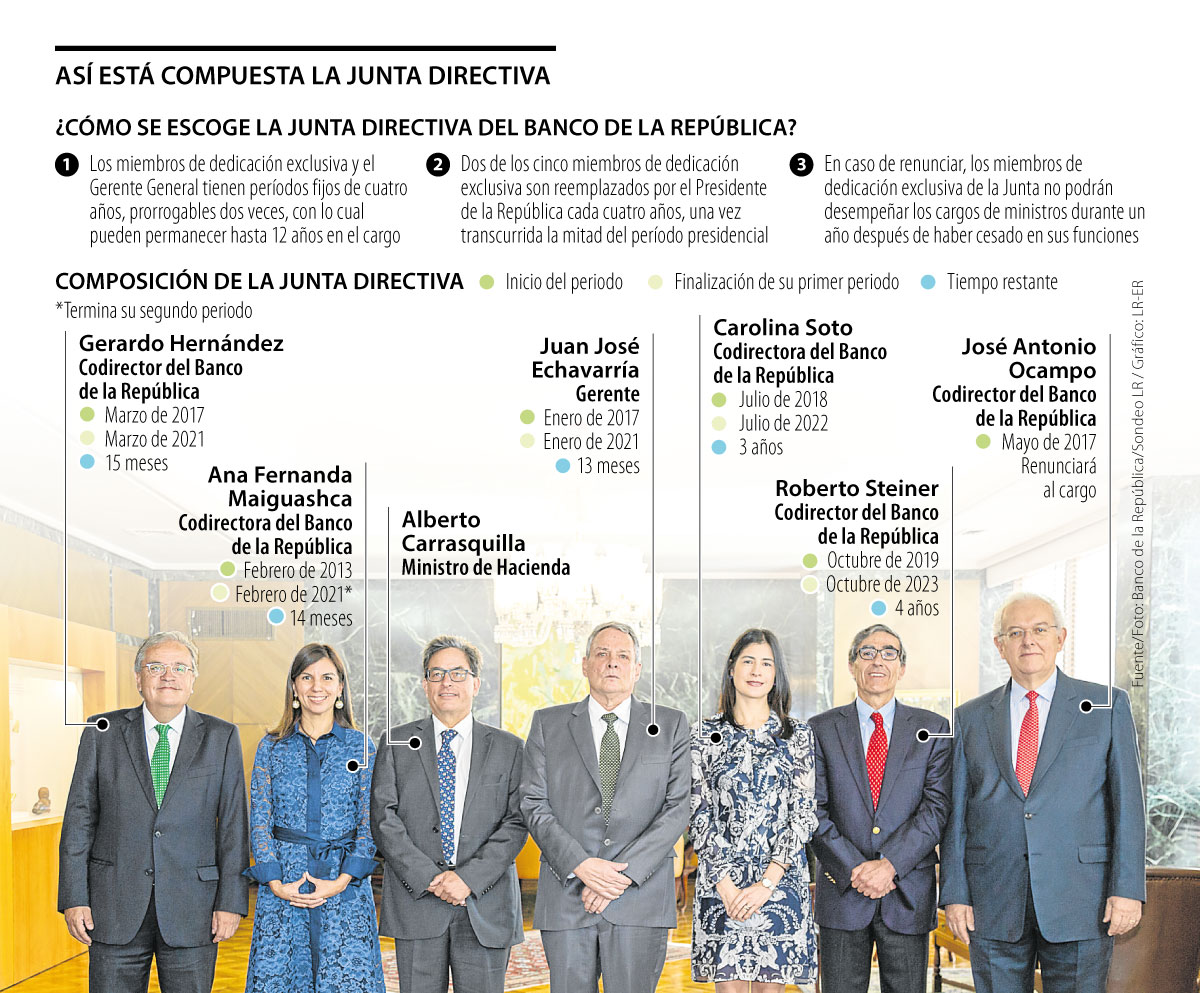 Mañana, tras la última reunión del año de la Junta Directiva del Banco de la República, en la que se espera que no se muevan las tasas de interés, que continuarían en 4,25%, se hará oficial la renuncia de José Antonio Ocampo, uno de los economistas más destacados del país y quien llegó al banco en mayo de 2017. Su salida reordenará los votos para elegir al sucesor de Juan José Echavarría, quien finaliza su primer periodo en 13 meses.