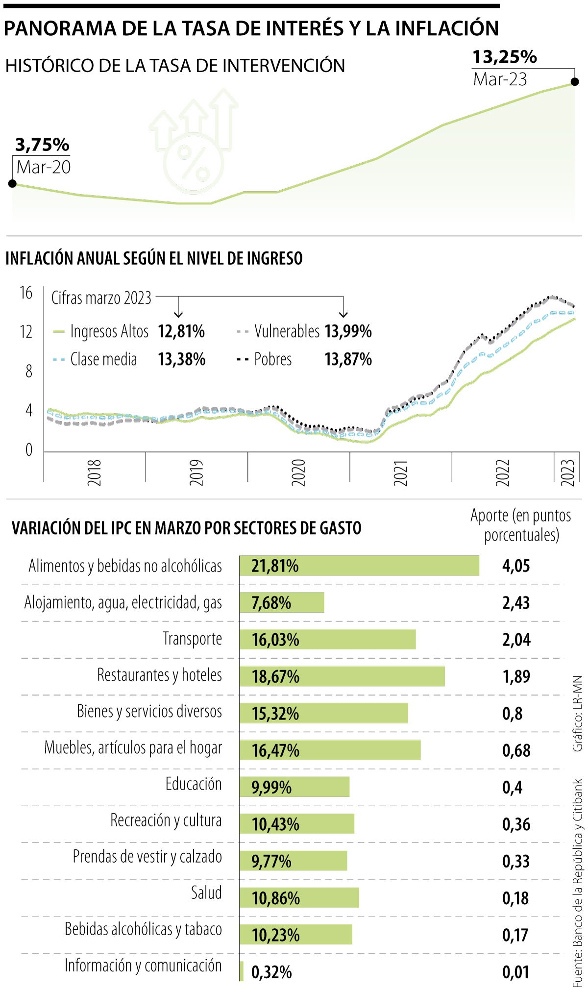 La nueva tasa de interés, que es el costo del dinero, se asemeja a su par de la inflación, que para marzo, según cifras del Dane, llegó a 13,34% anual. Esta pequeña diferencia entre una y otra (-0,09 pps), tomando como base el interés, se conoce como ‘tasa de interés real’.