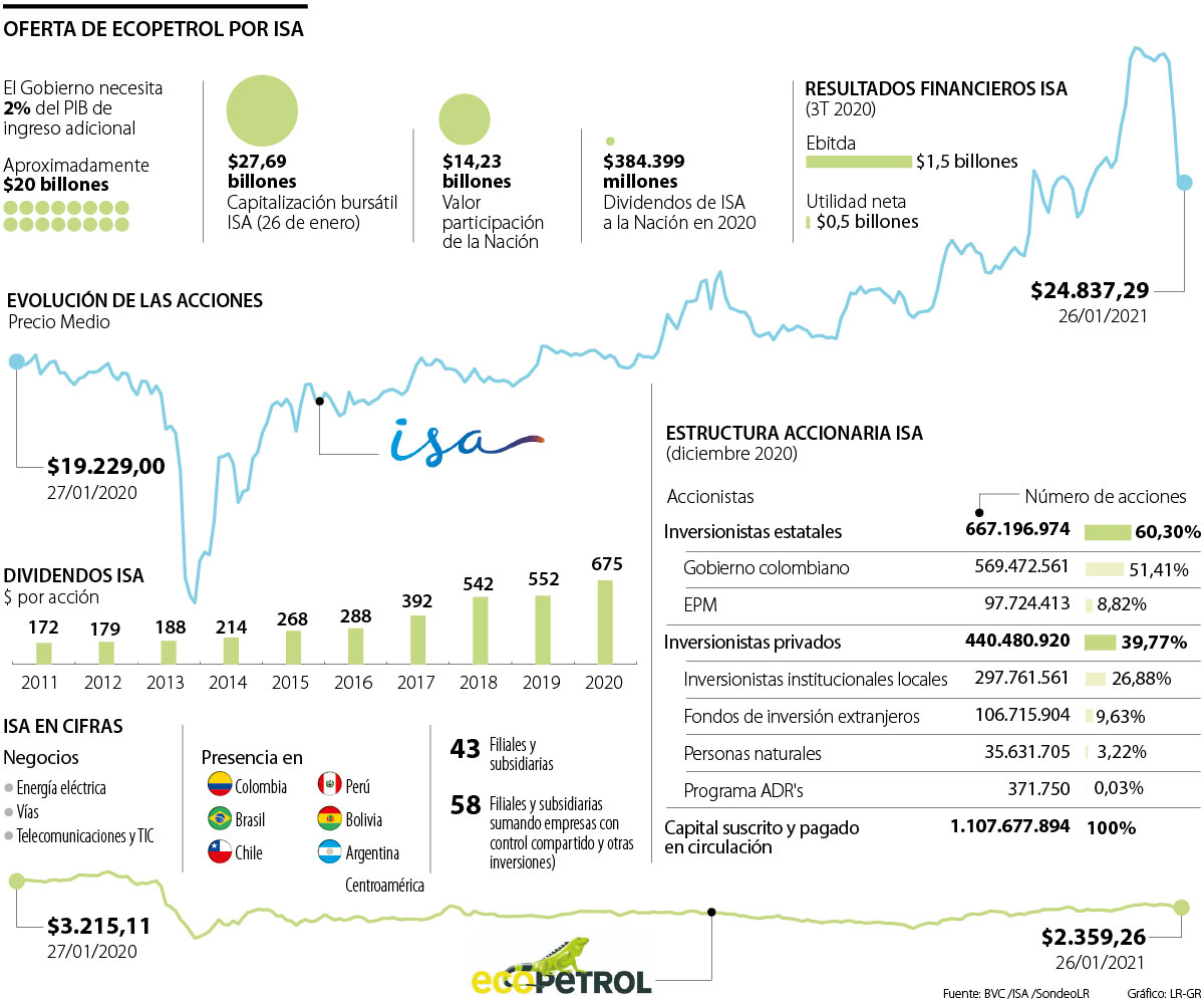 Con el anuncio de una oferta no vinculante de Ecopetrol al Ministerio de Hacienda por el 51,4% de acciones que tiene en Interconexión Eléctrica (ISA), el Gobierno Nacional no solo podría recaudar 60% o 70% de la tributaria que necesita, sino que también se abre la puerta a que la petrolera diversifique su negocio y se posicione como una de las empresas más grandes de América Latina.