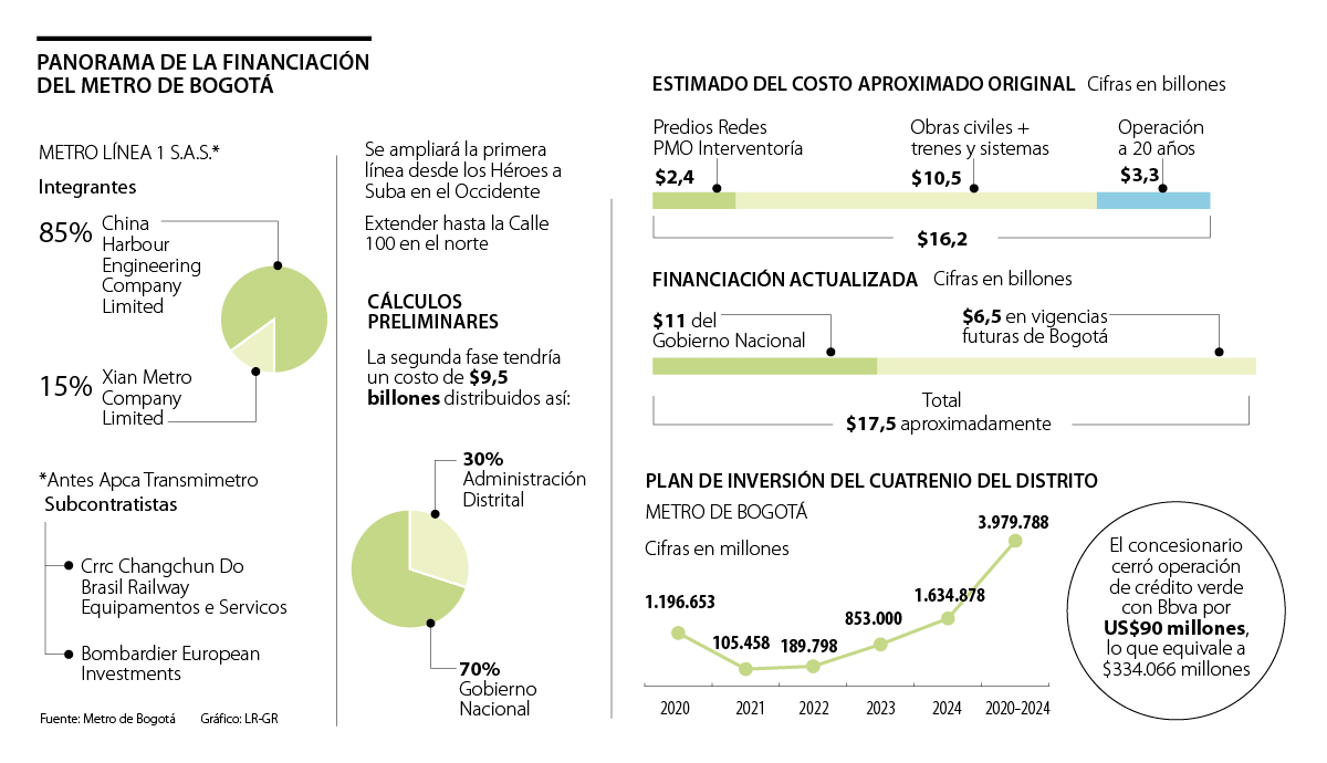 No obstante, de acuerdo con un reporte reciente de la Secretaría de Hacienda de Bogotá, el proyecto costará alrededor de $17,5 billones, de los cuales $11 billones serán desembolsados por la Nación y $6,5 billones por el Distrito, que ya tiene comprometidas esas vigencias futuras. Este valor incluye el costo de los intereses.