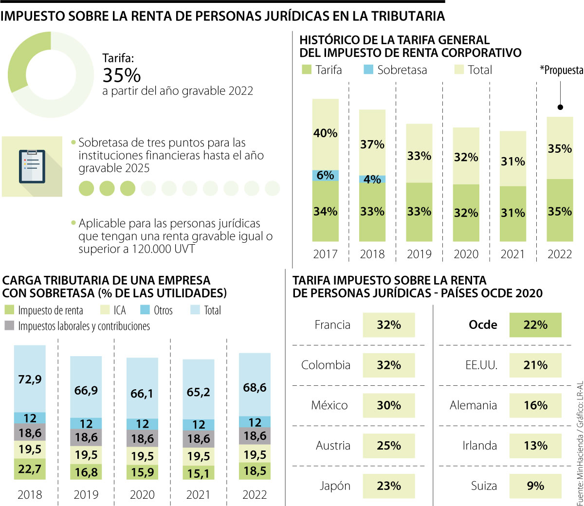 No obstante, ante la propuesta de Marulanda y de Goebertus, algunos congresistas dijeron a LR que en Colombia las micro y pequeñas empresas ya pueden acceder a una menor tarifa de renta, a través del régimen simple de tributación, por lo que no sería necesario establecer tasas diferenciales.