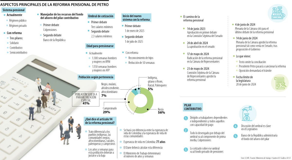 A propósito de que se aprobó la reforma como quedó en el Senado, cabe recordar que en aquel segundo debate, a última hora, se aprobó el artículo 94 de la reforma pensional, que se refiere a un trato diferencial a los pueblos indígenas, las comunidades negras, afrocolombianas, raizales, palenqueras y campesinos que podrán pensionarse anticipadamente.