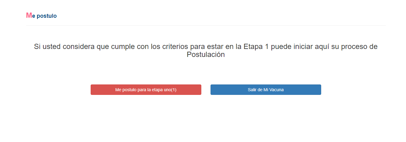 Si tiene más de 80 años y no aparece priorizado, deberá dar clic en el botón me postulo para la etapa 1.