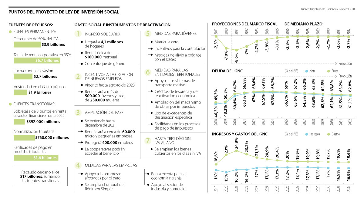 En esta ocasión, el proyecto de ley busca recaudar $15,2 billones a través de medidas permanentes; y cerca de $2,7 billones con fuentes transitorias, con lo que el monto alcanzaría a superar los $17 billones.